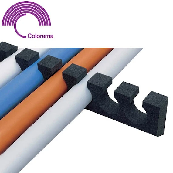 Colorama papergrip är en smart hållare av kraftigt skumgummi som skyddar pappret och förenklar lagring. Hållaren leveras parvis med plats för 6 st rullar med diameter ca 10cm (passar t.ex. bakgrundspapper 2,72x11m).