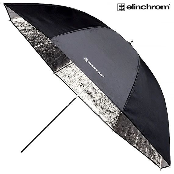 Paraplyer finns med flera olika ytor och material. Elinchrom Silver Paraply 105 cm används för att studsa ljuset i och silverbeläggning ger ett riktat, hårt ljus. Mycket populärt för motiv där man vill framhäva struktur och ytmönster som t.ex. fotografering av konst eller tuffare porträtt.