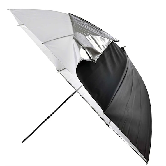 Elinchrom 2-i-1 105 cm Paraply har ett avtagbart tyg vilket resulterar i ett mycket mångsidigt paraply som kan användas både för att studsa ljuset i eller för att låta ljuset passera igenom. Med bägge tygerna monterade används paraplyet för att studsa ljuset mot den vita ytan vilket ger en mycket jämn ljusspridning över stor yta. När topptyget tas bort återstår ett transparent tyg som man slår ljuset igenom. Paraplyet kan placeras mycket nära motivet och ljuskaraktären påminner om ljuset från en octa-formad softbox.