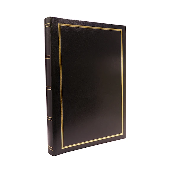 Bokbundet fotoalbum i en enkel men elegant design. Har extra kraftiga pärmar och med fickor för 300 bilder i storlekar upp till 11x15cm, samt ficka för en cd-skiva eller minneskort. Skrivfält vid varje bild.