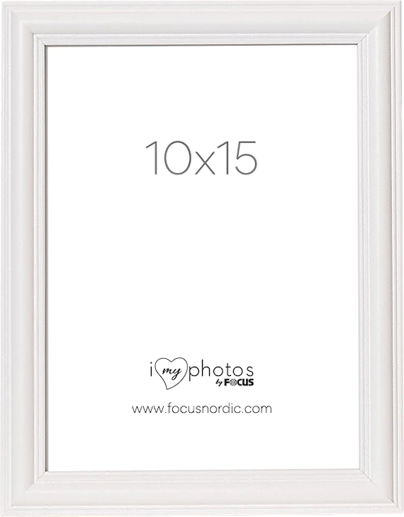 Vit klassisk, elegant och profilerad fotoram tillverkad av trä. Ramen har bildmåttet 10x15 och kommer med äkta glas för att framhäva det bästa i dina bilder.