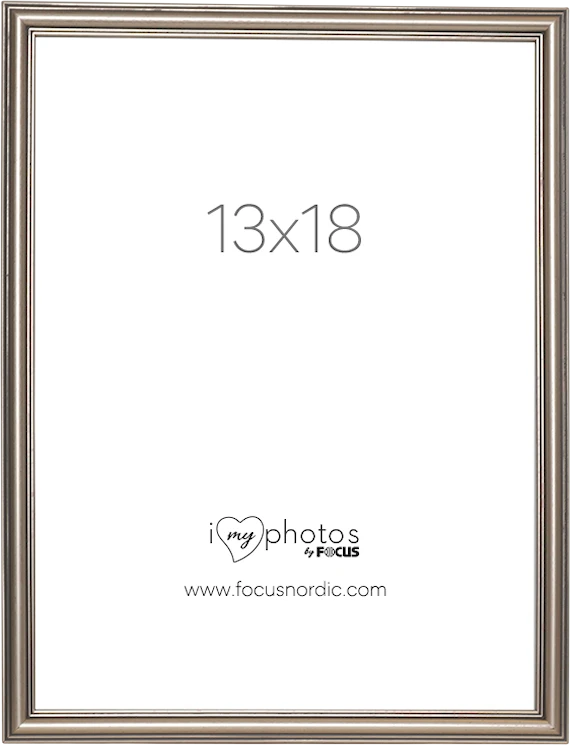 Silverfärgad klassisk, elegant och profilerad fotoram tillverkad av komposit. Ramen har bildmåttet 13x18 och kommer med äkta glas för att framhäva det bästa i dina bilder.