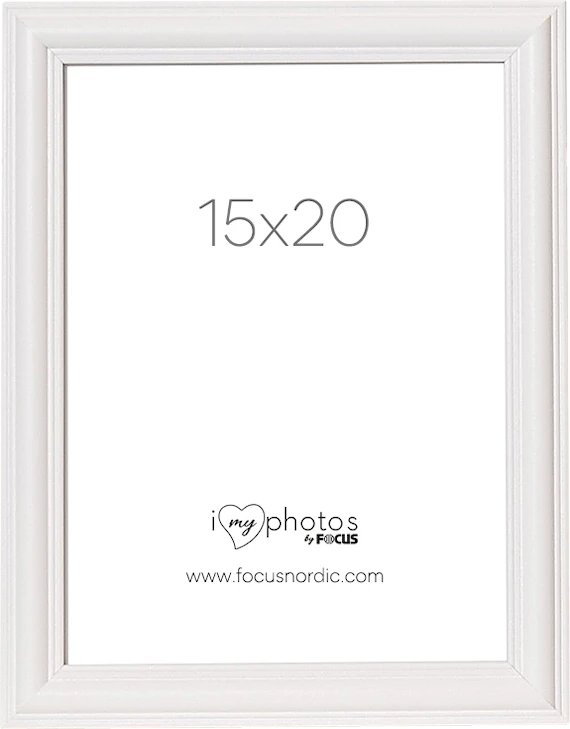 Vit klassisk, elegant och profilerad fotoram tillverkad av trä. Ramen har bildmåttet 15x20 och kommer med äkta glas för att framhäva det bästa i dina bilder.