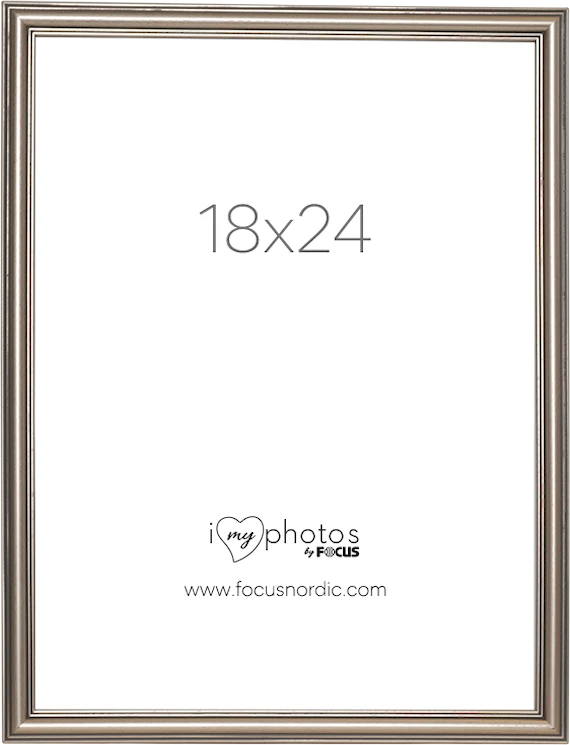 Silverfärgad klassisk, elegant och profilerad fotoram tillverkad av komposit. Ramen har bildmåttet 18x24 och kommer med äkta glas för att framhäva det bästa i dina bilder.