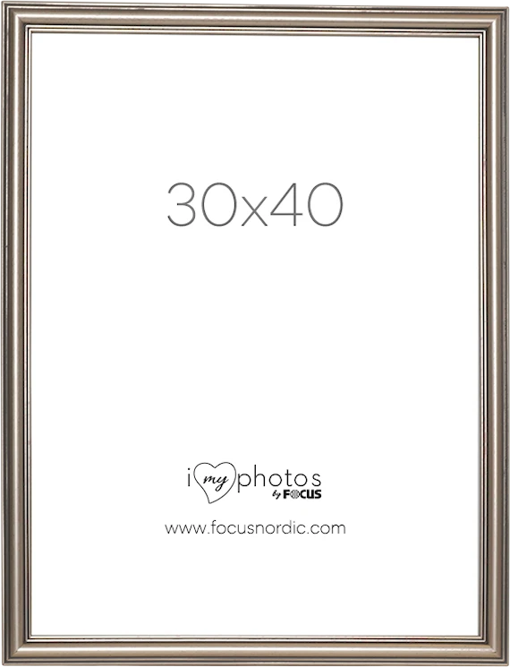 Silverfärgad klassisk, elegant och profilerad fotoram tillverkad av komposit. Ramen har bildmåttet 30x40 och kommer med äkta glas för att framhäva det bästa i dina bilder.
