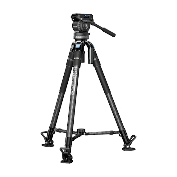 Stativet är byggt med starka kolfiberben (36 mm i diameter), vilket ger både lätt vikt och ökad stabilitet. Med en maxbelastning på 25 kg är det utmärkt för användning med tunga kameror under långvariga tagningar.