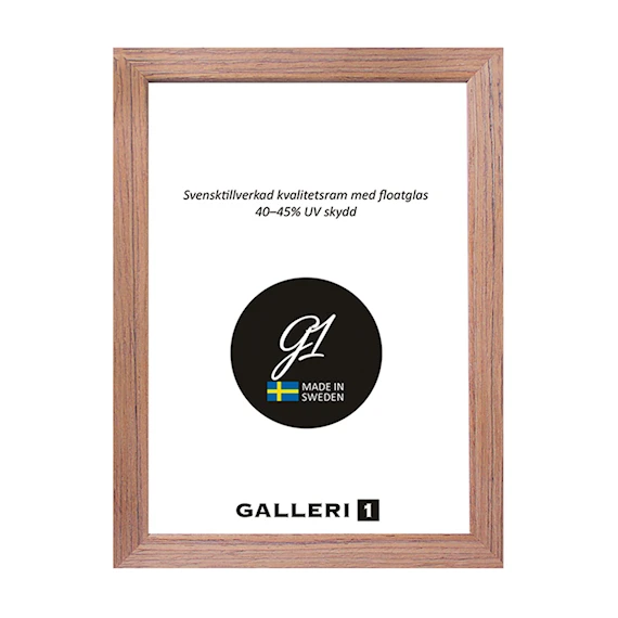 2Q från Galleri1 är en snygg träram i teak med minimalistisk profil. Ramen är tillverkad i Sverige och levereras med floatglas och bakstycke med upphängningsöglor för antingen vertikal eller horisontell väggmontering.