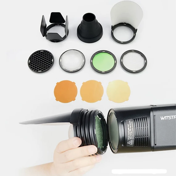 Godox AK-R1 tillhörspaket utgör en omfattande uppsättning ljusmodifierare designade för olika blixtenheter, inklusive HR-200 (för Godox AD200/AD200Pro), Godox V1, Godox AD100 Pro, Godox RGB R1 Light och kamerablixtar med Godox S-R1-adapter (säljs separat). Det är det perfekta tillbehörspaketet för dem som önskar fullständig kontroll över ljusspridningen.