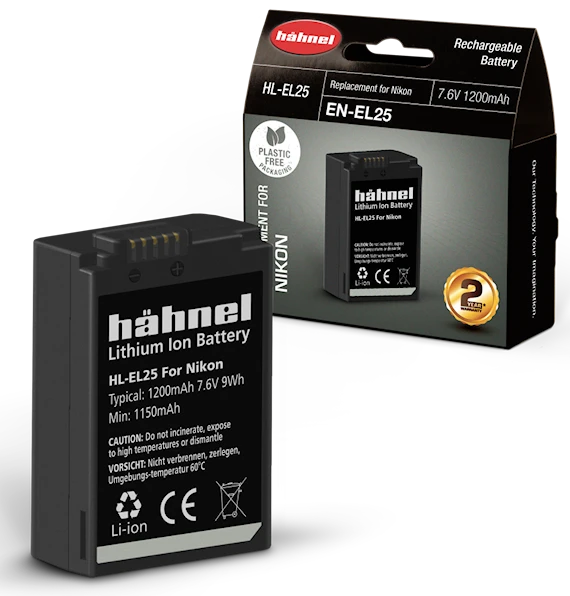 Laddningsbart litiumjonbatteri motsvarande Nikon EN-EL25. Passar bl.a Nikon Z50.