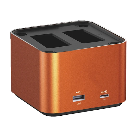 Du kan ladda upp till två kamerabatterier samtidigt för snabb och enkel laddning.