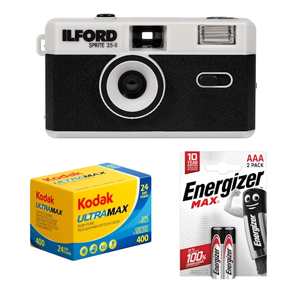 Ilford Camera Sprite 35-II Svart&Silver + Ultramax 400 + 2st AAA batterier