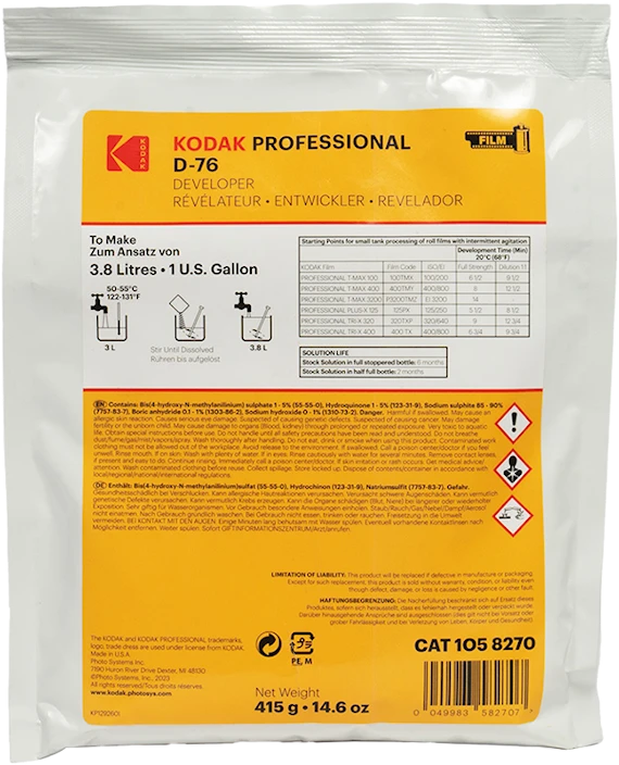 En pålitlig och populär framkallare för svartvit film som lämpar sig extra bra för att ta fram detaljer i skuggor. Pulvret blandas med vatten och räcker till 3,8 liter färdig lösning.