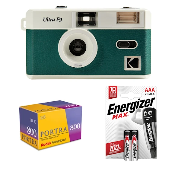 Kodak Ultra F9 Reusable Camera DARK NIGHT GREEN + Portra 800 + 2st AAA batterier