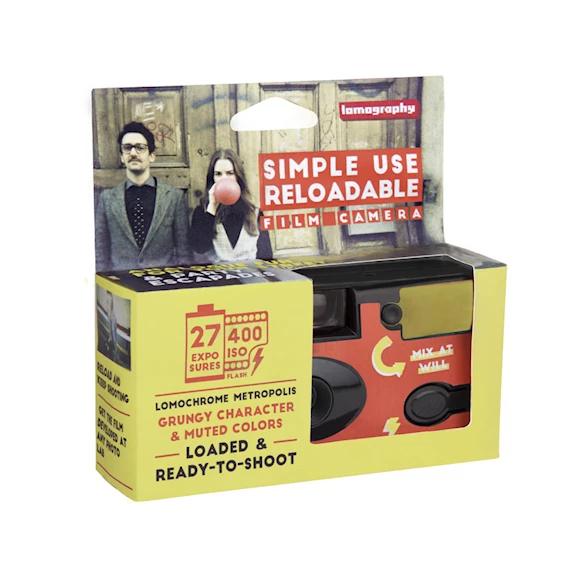 Lätt att använda och förladdad med LomoChrome Metropolis-film (ISO 100-400, 27 exp), vilket ger kraftiga färgförskjutningar och dämpade toner. #Nofilter, liksom.
