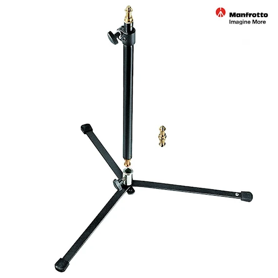 Belysningsstativ med bas i svart stål med löstagbar 2 sektioners ställbar mittpelare av aluminium.