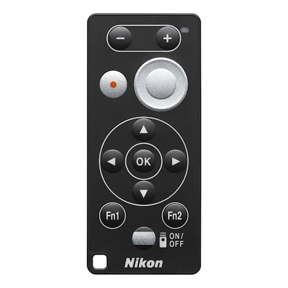 Med denna Bluetooth® fjärrkontroll kan du kontrollera viktiga kamerafunktioner när du fotograferar med fjärrkontroll. Den kan användas tillsammans med vissa Nikon-kameror och har separata knappar för avtryckare och videoinspelning. Med kontrollen kan du också zooma och använda kameramenyn.