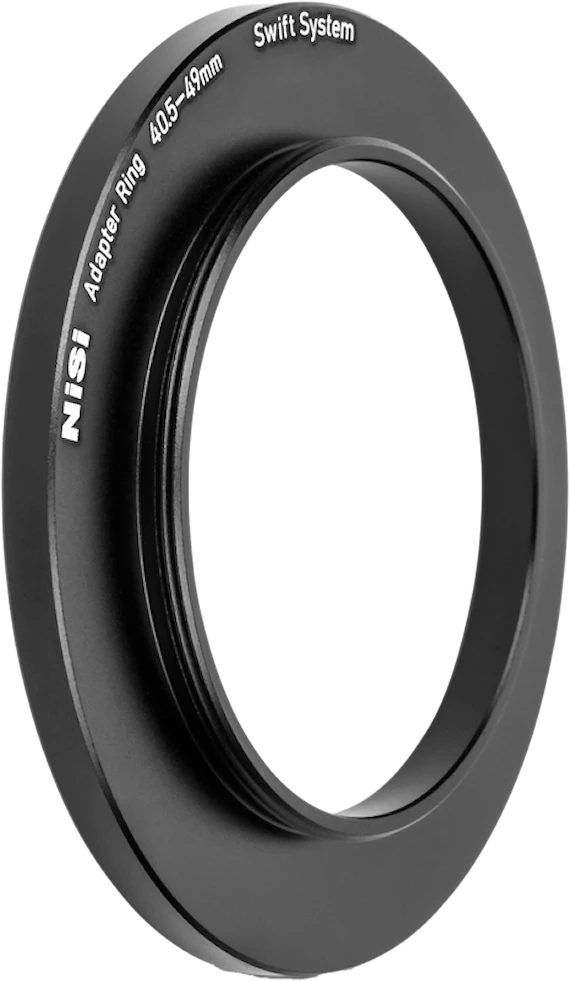 Fäst den här adaptern på ett objektiv med filtergänga på 40.5mm för att använda NiSi Swift-filter med en diameter på 49mm.