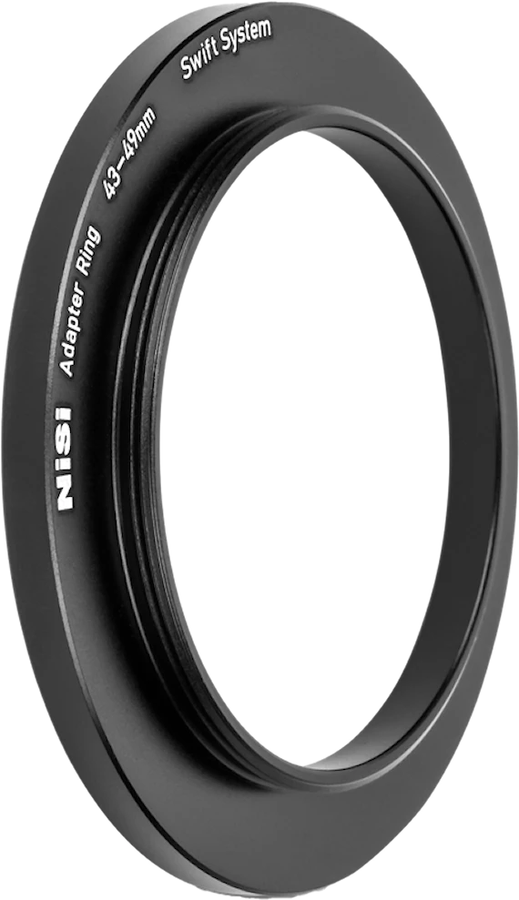 Fäst den här adaptern på ett objektiv med filtergänga på 43mm för att använda NiSi Swift-filter med en diameter på 49mm.