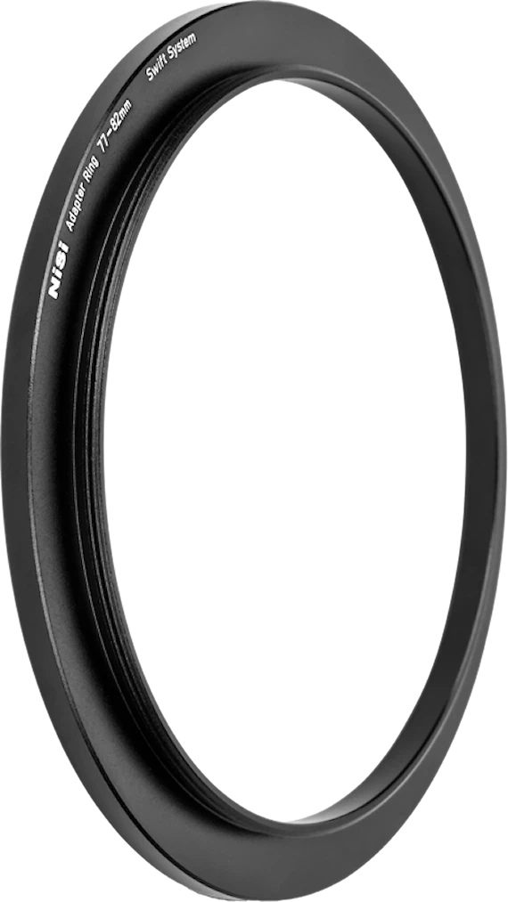 Fäst den här adaptern på ett objektiv med filtergänga på 77mm för att använda NiSi Swift-filter med en diameter på 82mm.
