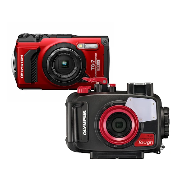 OM System TG-7 Röd + PT-059 Undervattenshus