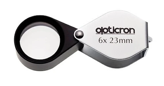 Liten lupp med metallhölje med 6x förstoring och 23mm linsdiameter.