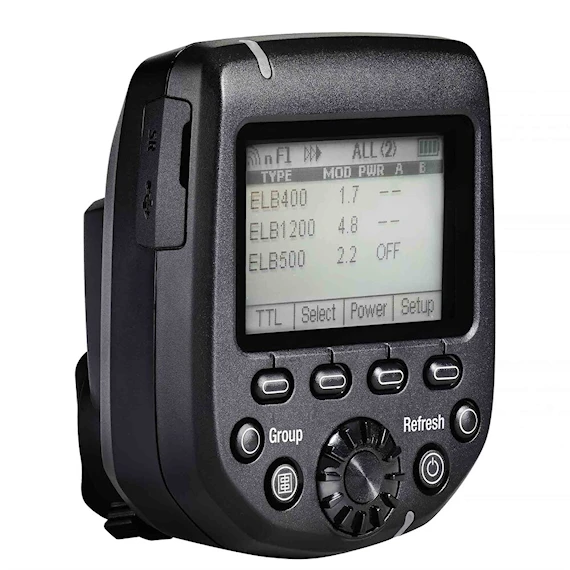 Via tydlig display visas inställd uteffekt på aktiverade blixtar och varje enhet kan styras individuellt eller som grupp. Beroende på blixtmodell* kan Hi-Sync (HS) eller High Speed Sync (HSS) väljas för sömlös blixtsynkronisering ned till 1/8000 sek! Växling mellan manuell blixtstyrning och TTL automatik sker med en enkel knapptryckning (gäller för Elinchrom TTL blixtmodeller).