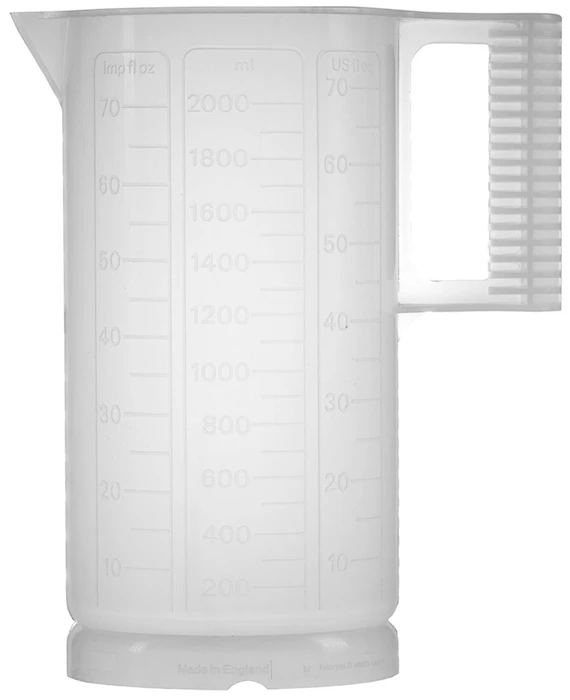 Kanna av halvtransparent plast. Gradering: 100ml.