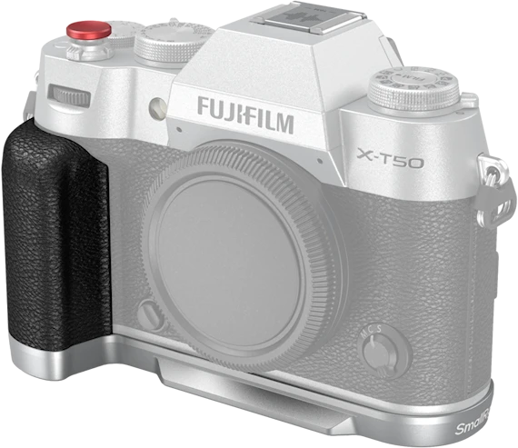 Ett snyggt handgrepp som kompletterar kameran med färger och material som matchar Fujifilm X-T50 Silver. Det ergonomiska handtaget i silikon förbättrar greppförmåga och komfort. Bottenplattan är Arca-Swiss-kompatibel och har flera inbyggda 1/4"-stativgängor. En snygg avtryckare och ett specialdesignat blixtskoskydd ingår också i paketet, som totalt väger endast 77g.