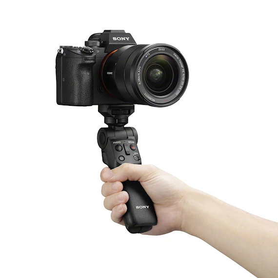 Handtaget är konstruerat för optimal stabilitet och komfort, oavsett om det fästs vid en kompaktkamera eller en spegellös kamera med utbytbart objektiv. När du håller i handtaget är fjärrkontrollknapparna lättillgängliga för smart, intuitiv användning.