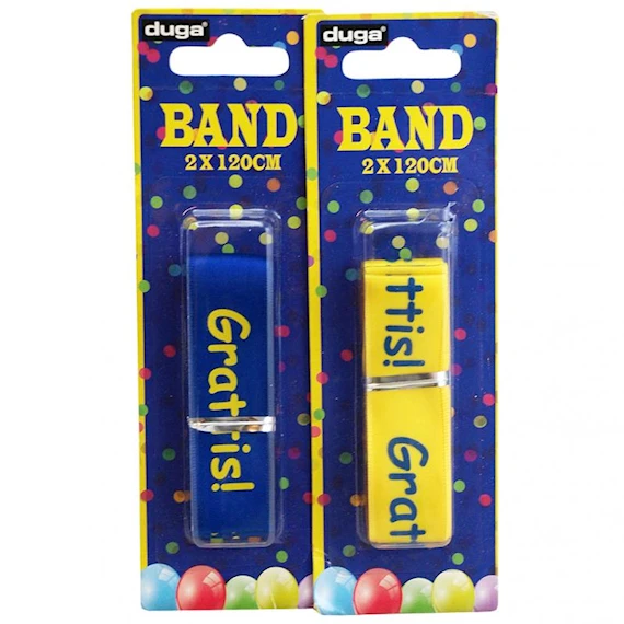 Gult eller blått studentband med grattis tryckt på. Säljes i osorterad färg