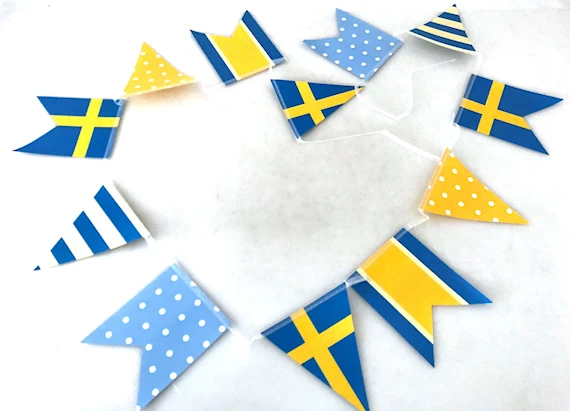 12st vimplar med studentmotiv som sitter på ett 2,5meter långt band. Varje vimpel är 25cm från spetsen till snöret. Perfekt dekoration till kalaset!
