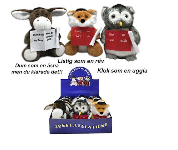 Studentdjur Uggla/Åsna/Räv 20cm