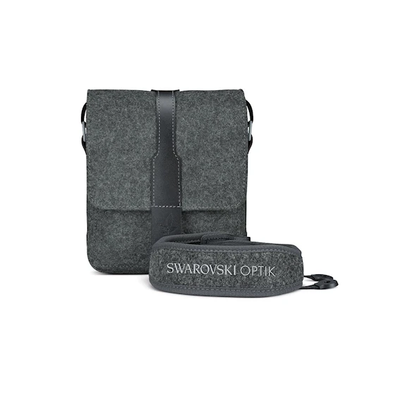 Väska och rem i Northern Light-utförande som är gjord för Swarovski CL Companion. Väskan passar övriga kikare i samma storlek (ca 13x12x5,5cm) men remmen passar enbart Swarovskis kikare.