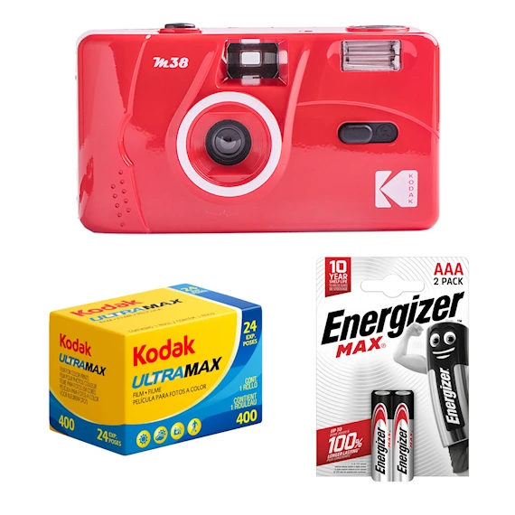 Tetenal Kodak M38 Reusable Camera FLAME SCARLET + Ultramax 400 + 2st AAA Batterier