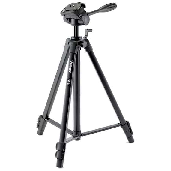 Velbon EF-61 är ett stativ i aluminium. Lämpar sig perfekt för mindre kameror då det är ett enkelt och smidigt stativ och klarar en vikt på upp till 4kg.